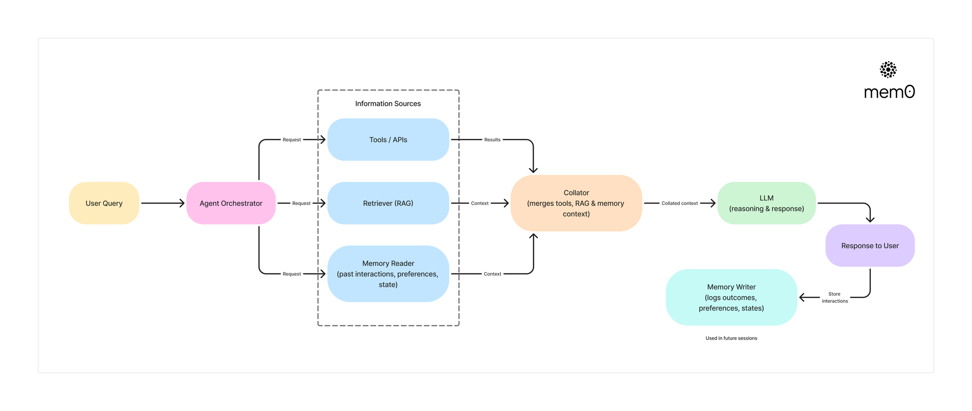 Memory, on the other hand, brings in continuity. It captures user preferences, past queries, decisions, and failures and makes them available in future interactions.