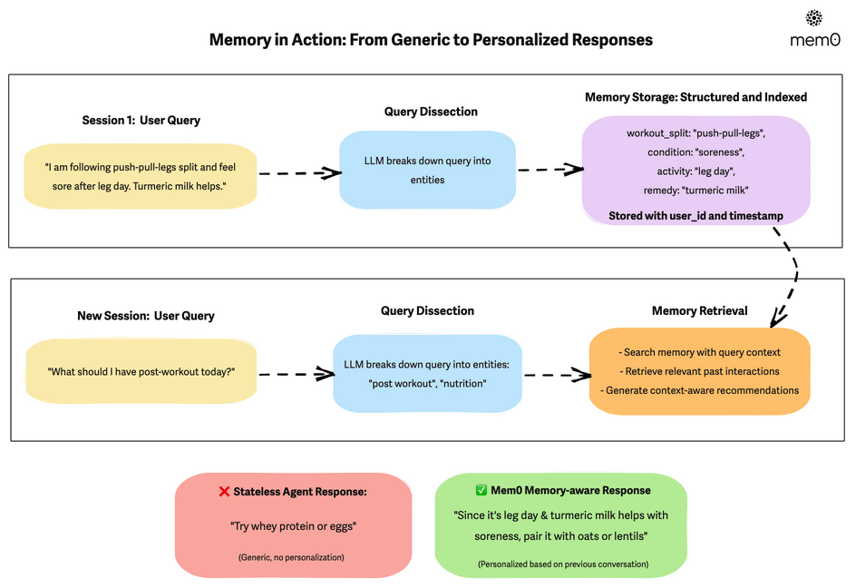 A memory-aware agent recalls prior cues, infers it’s leg day, and builds a response. The response is not just better - it’s aligned, informed, and personal. And that’s the gap memory fills.